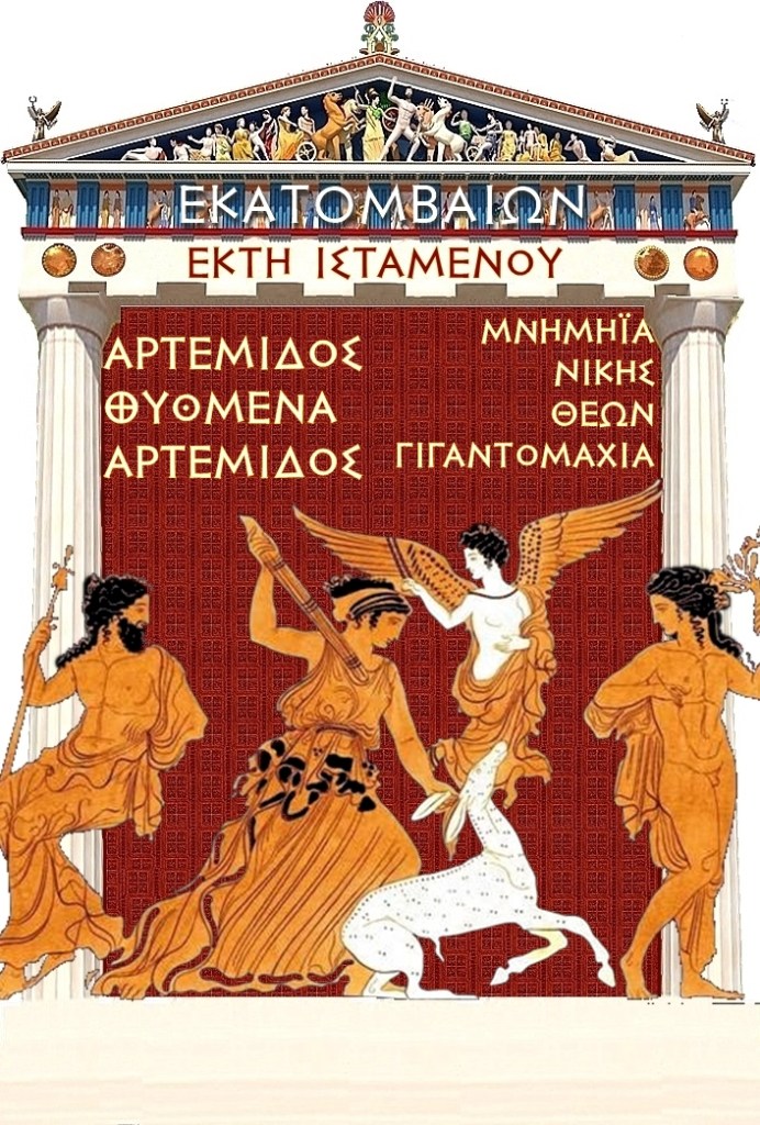 ― Ἔξω τῶν ἑορτῶν ἱεραὶ τινες τοῦ μηνὸς ἡμέραι νομίζονται Ἀθήνῃσι θεοῖς τισιν. . . ἡ δὲ ἕκτη τῇ Ἀρτεμίδι, καὶ ἄλλη ἄλλῳ.