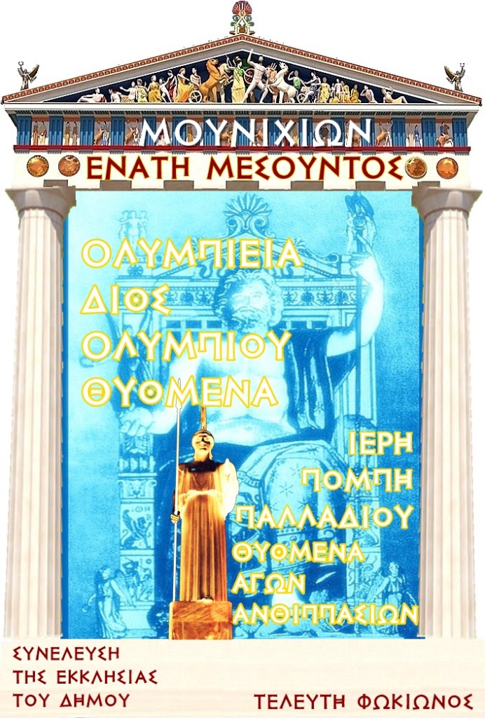 Προς τα τέλη της άνοιξης , την 19η του Μουνιχιώνος, στον τελευταίο μήνα της ανοίξεως, ο καιρικός θεός των Αθηναίων με την Ολύμπια λατρευτική πτυχή του καλείται να φέρει καθαρούς ουρανούς για την ωρίμανση του κριθαριού και του σιταριού. Η απαιτούμενη τελετή χαρακτηρίζεται από αίγλη και λαμπρότητα..