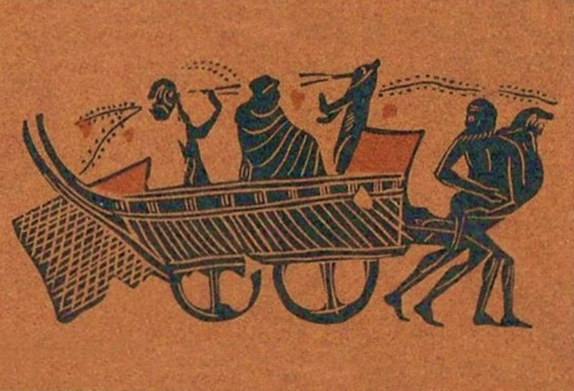 Στις παραθαλάσσιες πόλεις της Ελλάδος, και αυτές είναι πολλές, ένα ξύλινο άγαλμα του Διονύσου μεταφέρεται στους δρόμους μέσα σε μια άμαξα άρμα που έχει διαμορφωθεί έτσι ώστε να μοιάζει με πλοίο, με πλώρη και πρυμναία στήλη.