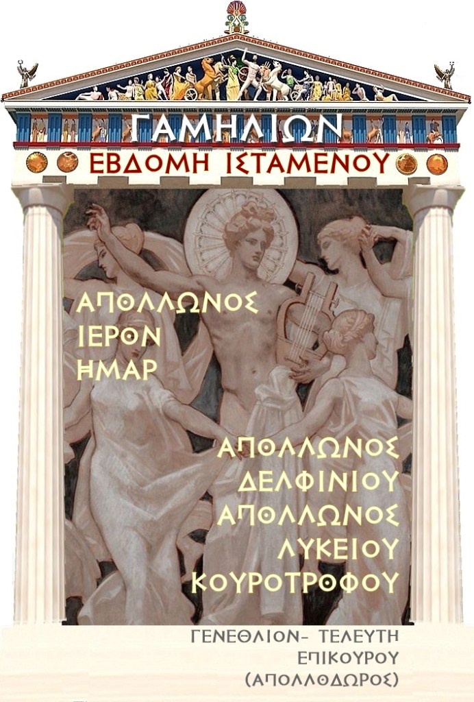 Η σημερινή ημέρα είναι ιερή για τα συμβολικά γενέθλια του θεού Απόλλωνος και είναι επίσημη μηνιαία αττική εορτή.
