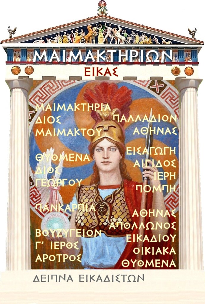 Τη σημερινή ημέρα τιμούμε τον Δία Γεωργό στην Αθήνα με αναμεμειγμένα σιτηρά (πανκαρπία), και θεωρείται ότι ειναι η ημερα του εορτασμού των Μαιμακτηρίων. Ο Ζευς Μαιμάκτης τιμάται στην εορτή των Μαιμακτηρίων, Ζευς ο ταραχώδης.
