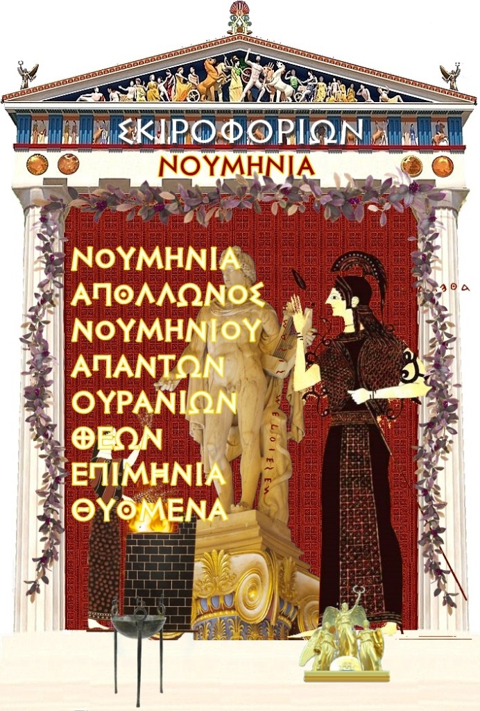 ― Τὴν νεομηνίαν πάντων τῶν θεῶν νομίζουσιν εἶναι. ταύτην γὰρ οἱ πρόγονοι τοῖς θεοῖς ἀνέθεσαν διὰ τὸ πρώτην αὺτὴν εἶναι τοῦ μηνός. πάσας τε τὰς ἀρχὰς προσήψαν αὐτοῖς ὀρθῶς ποιοῦντες…τοῦ δὲ (τὸ δὲ) Ἀπόλλωνος ταύτην εἶναι νομίζειν τὴν ἡμέραν ―εἰκότως τὸ πρῶτον φῶς τῷ αἰτιωτάτῳ τοῦ πυρὸς (ἀποδιδόασιν)• ἐκάλουν τε αὐτὸν καὶ Νεομήνιον. ἡ ἱστορία παρὰ Φιλοχόρῳ.