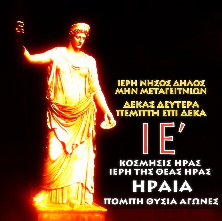 Την σημερινή ημέρα, στο ιερό Έτος των Δηλίων, εορτάζεται η Κόσμησις του αγάλματος της Ήρας. Η Κόσμησις (του πέπλου) του αγάλματος είναι μέρος των εορτασμών του νησιού για τα Ήραια προς τιμήν της θεάς Ήρας και περιλαμβάνουν πομπή θυσία και αγώνες.