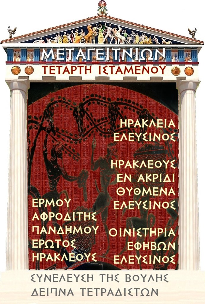 Τη σημερινή ημέρα πραγματοποιείται η μηνιαία εορτή που είναι αφιερωμένη στον Ηρακλή, τον Ερμή, την Αφροδίτη και τον Έρωτα. Μια συνέλευση της Βουλής, το έτος -155,-154, εδραιώνει την σημερινή ημέρα ως ημέρα συνελεύσεων της Βουλής.
