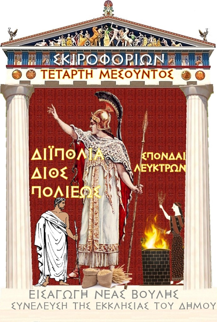 Τα Διϊπόλεια εορτάζονται σήμερα, στις 14 Σκιροφοριώνος μετά τη δύση του ηλίου, προς τιμήν του Διός Πολιέως.