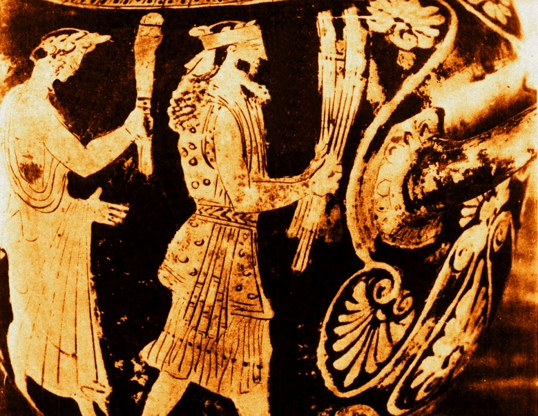 Έτσι, η δήλωση στον Αθηναίο , I, 21e, ότι το ένδυμα του ιεροφάντη και του δαδούχου μοιάζει με αυτό της σκηνής, πιθανότατα γίνεται αυστηρά κατανοητή μόνο ότι ισχύει για το ένδυμα.