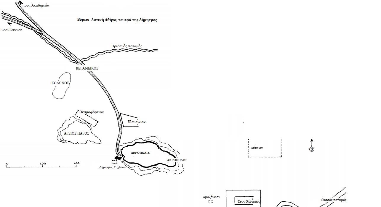 Στα βορειοδυτικά και πάλι, τα ιερά της Δήμητρας εδραιώθηκαν κατά μήκος του κεντρικού δρόμου για να συναγωνιστούν την Ελευσίνα, έως ότου να πάψει η αντιπαλότητα από την πόλη της Ελευσίνας.