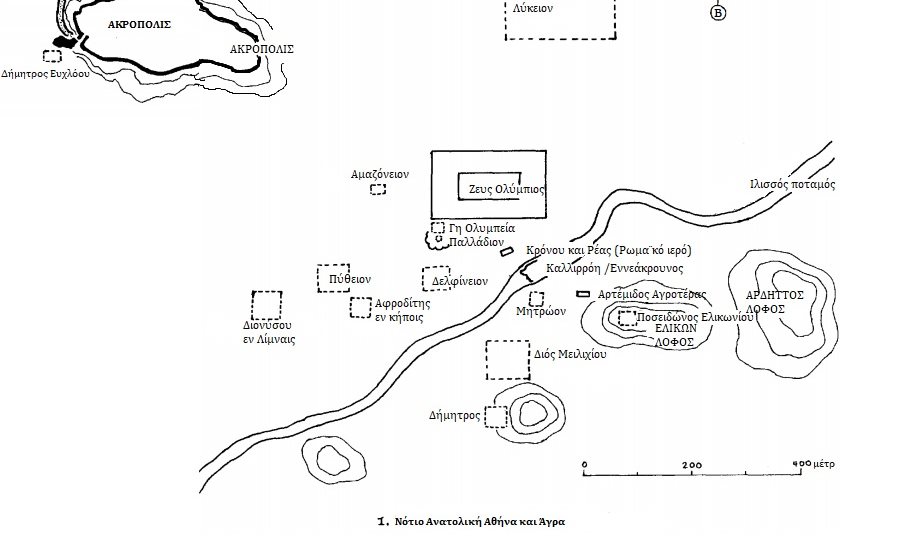 Ο οικισμός στα νοτιοανατολικά χαρακτηρίζεται επίσης από τα αγροτικά ιερά στην Άγρα. Εδώ βρίσκονται όλες οι βασικές θεότητες της γεωργίας, της κτηνοτροφίας, μαζί με το Λύκειον, της υπεράσπισης της πόλης.