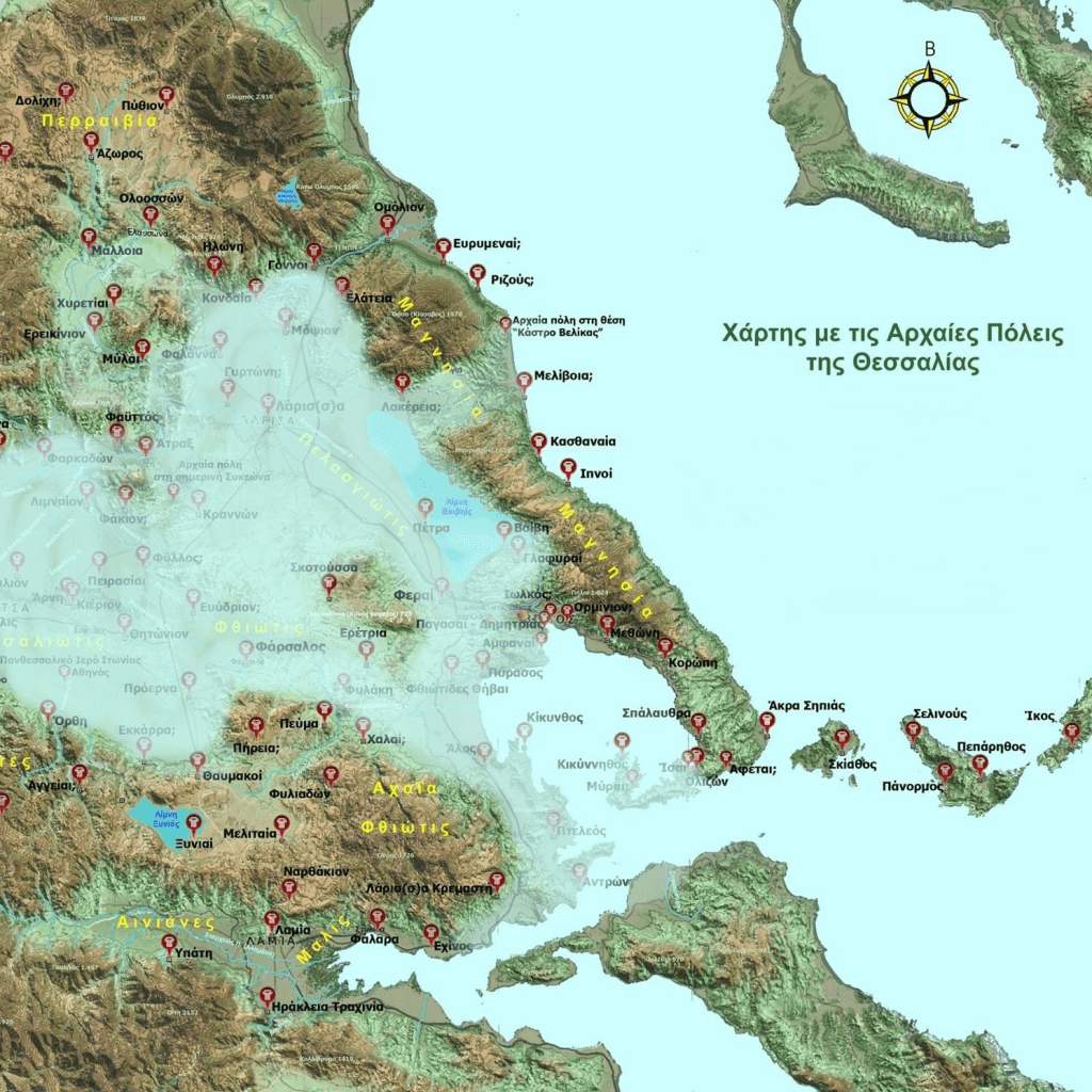 γ’ . Θεσσαλία ― Είναι η γεωγραφική και η ιστορική ονομασία της ίδιας της Θεσσαλίας. Δεν υπήρχε καμμία διαφορά μιας ονομασίας όπως «Θεσσαλία» με αυτή της «Θασσαλίας», κανένας, ο οποίος θα είχε μια μικρή εμπειρία στον εντοπισμό της προέλευσης των ονομάτων και στη διερεύνηση της διαδικασίας με την οποία μπορεί να θεωρηθεί ότι έχουν περάσει από το ένα σχήμα στο άλλο, δεν θα είχε καμία δυσκολία στην εξαγωγή της λέξεως «Θασσαλίας» από την λέξη «Θαλασσία», και κατά συνέπεια, τελικώς από την «Θάλασσα».